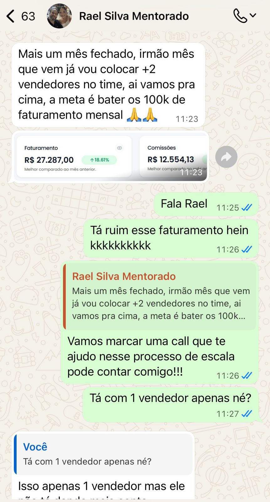Com dois professores ao seu lado, você terá o suporte e o caminho certo para vender todos os dias, sem ficar perdido ou sozinho nessa jornada.